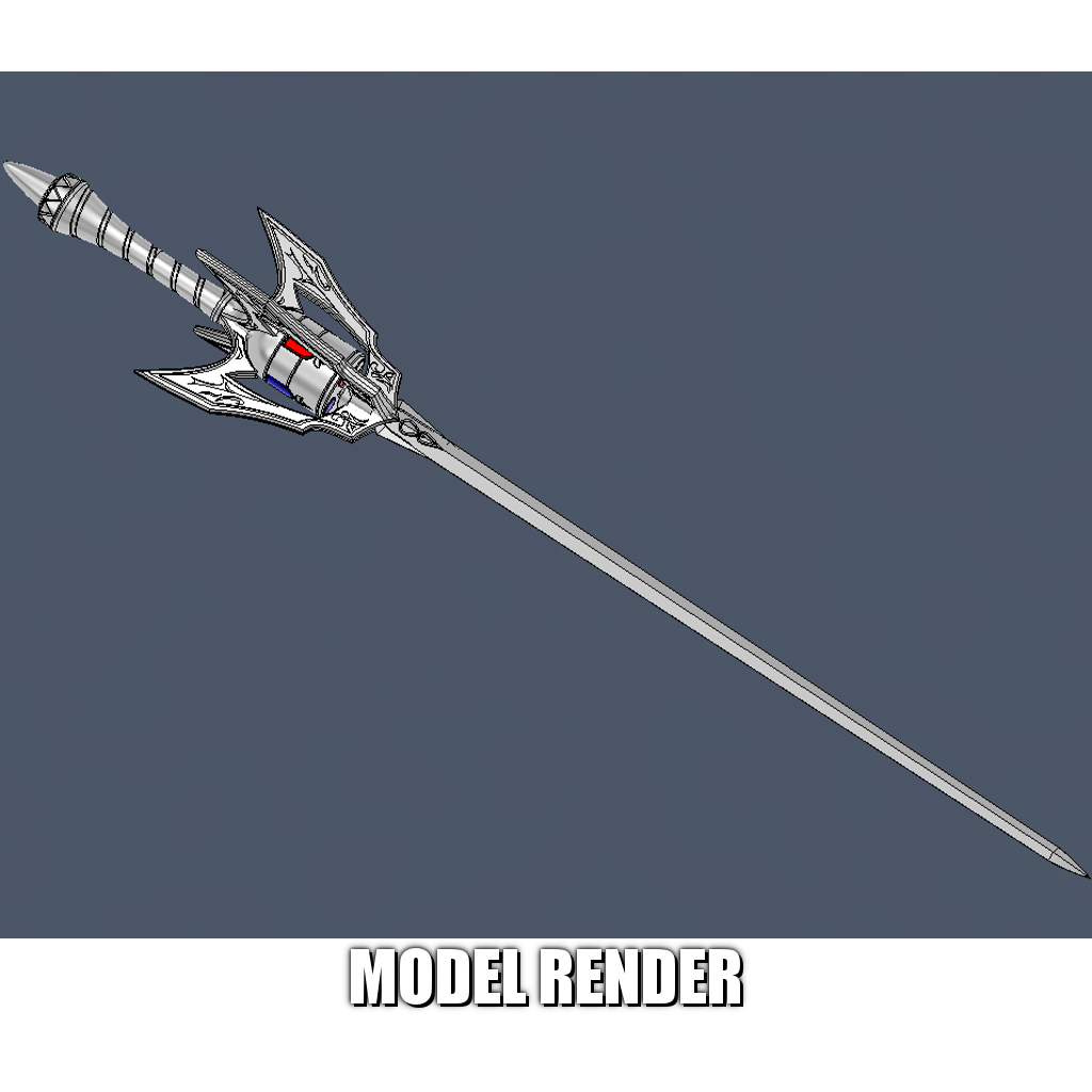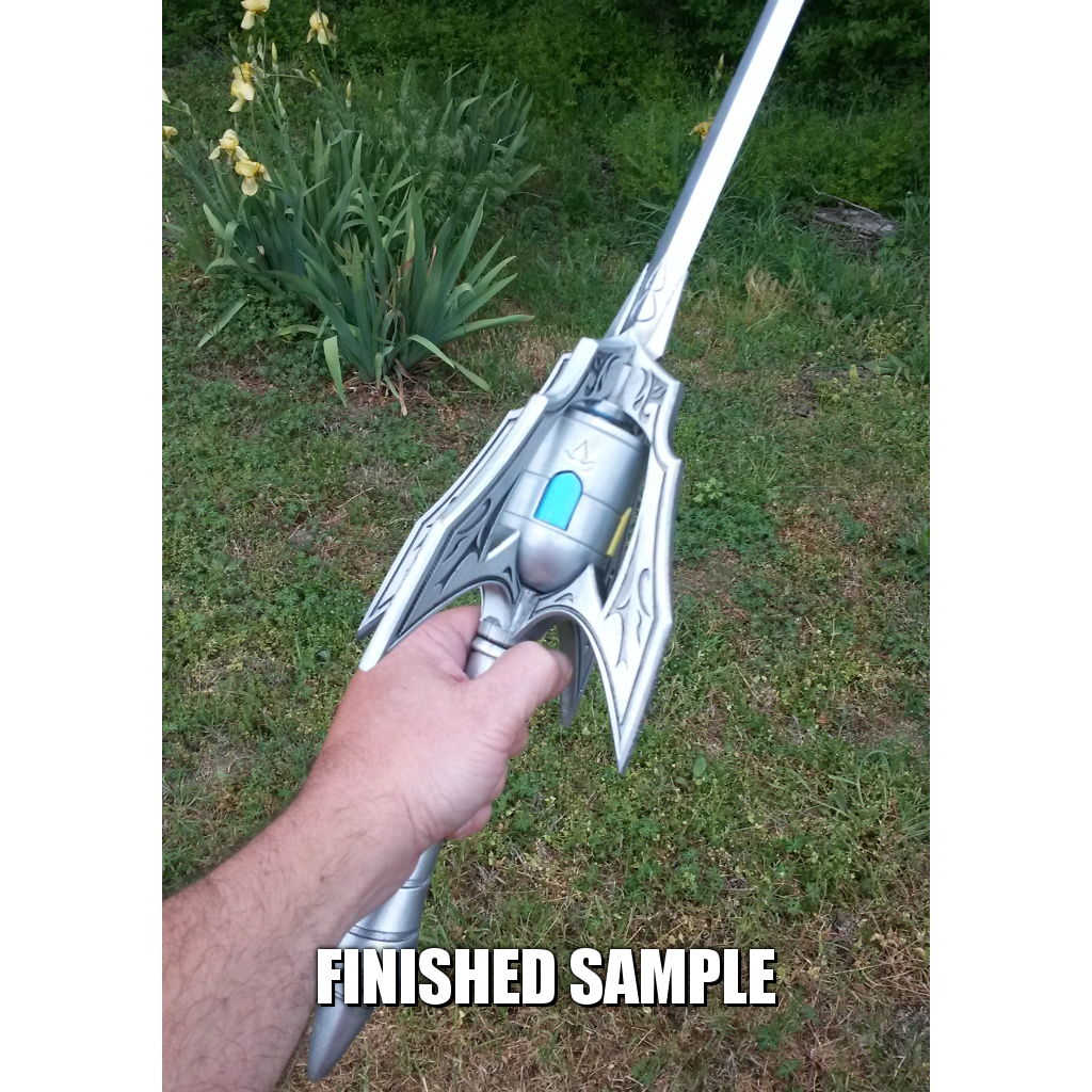 This prop is modeled, printed, and finished by me in all plastic, with a 1/8" x 80cm / 31.4" support rod running inside.